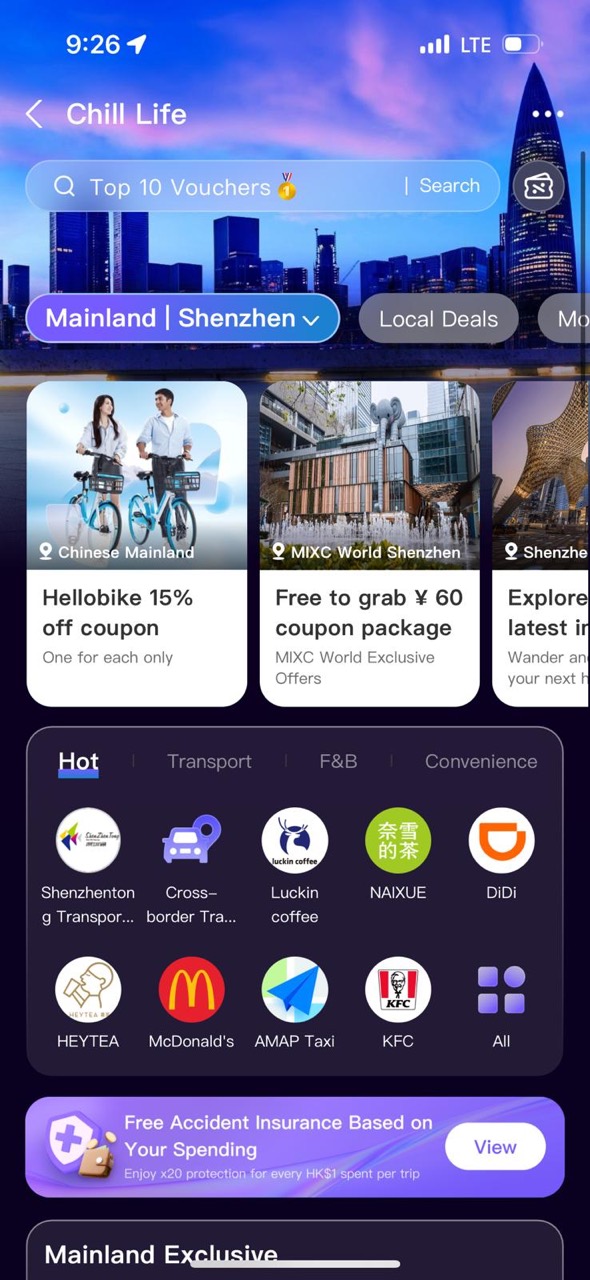 The “Chill Life” section at the top of the AlipayHK App homepage brings together a variety of lifestyle services and deals from Hong Kong and the Chinese mainland, all designed to help you kick back, relax, and enhance your life!